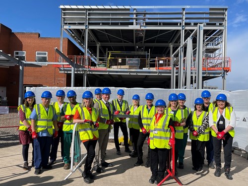 The signing of the beam is the latest milestone in construction. Janelle Holmes, Chief Executive at WUTH and Mark Greatrex, Chief Finance Officer and Deputy Chief Executive at WCHC, attended the signing. They were joined by colleagues from both organisations, including Emergency Department and Urgent Treatment Centre staff, the Estates Team overseeing the construction and volunteers from the Emergency Department who also signed the beam. Representatives from Tilbury Douglas, the company leading on construction, also attended the signing.